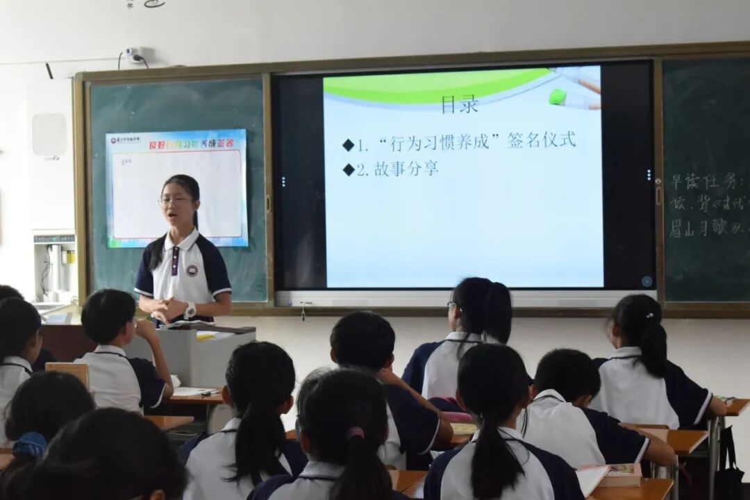 开学典礼活动结束后,各班到教室启动行为规范养成月仪式。